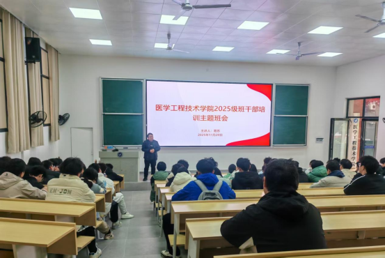 11月20日下午,太阳集团tcy8722在电教楼105教室举办2025级班干部培训会,学办主任易苏担任主讲,全体辅导员及各班班干部共同参与。